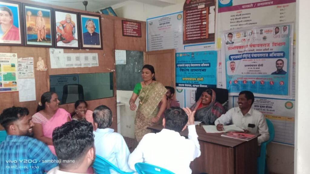 आज आमच्या ग्रामपंचायत कार्यालयात ग्रामसभा उत्साहात व सहभागाने पार पडली. ग्रामसभेमध्ये गावातील सर्व नागरिक, महिला बचत गटातील सदस्य, युवा, ज्येष्ठ नागरिक यांनी सक्रिय सहभाग नोंदवून ग्रामविकासासाठी महत्त्वपूर्ण चर्चा करण्यात आली.